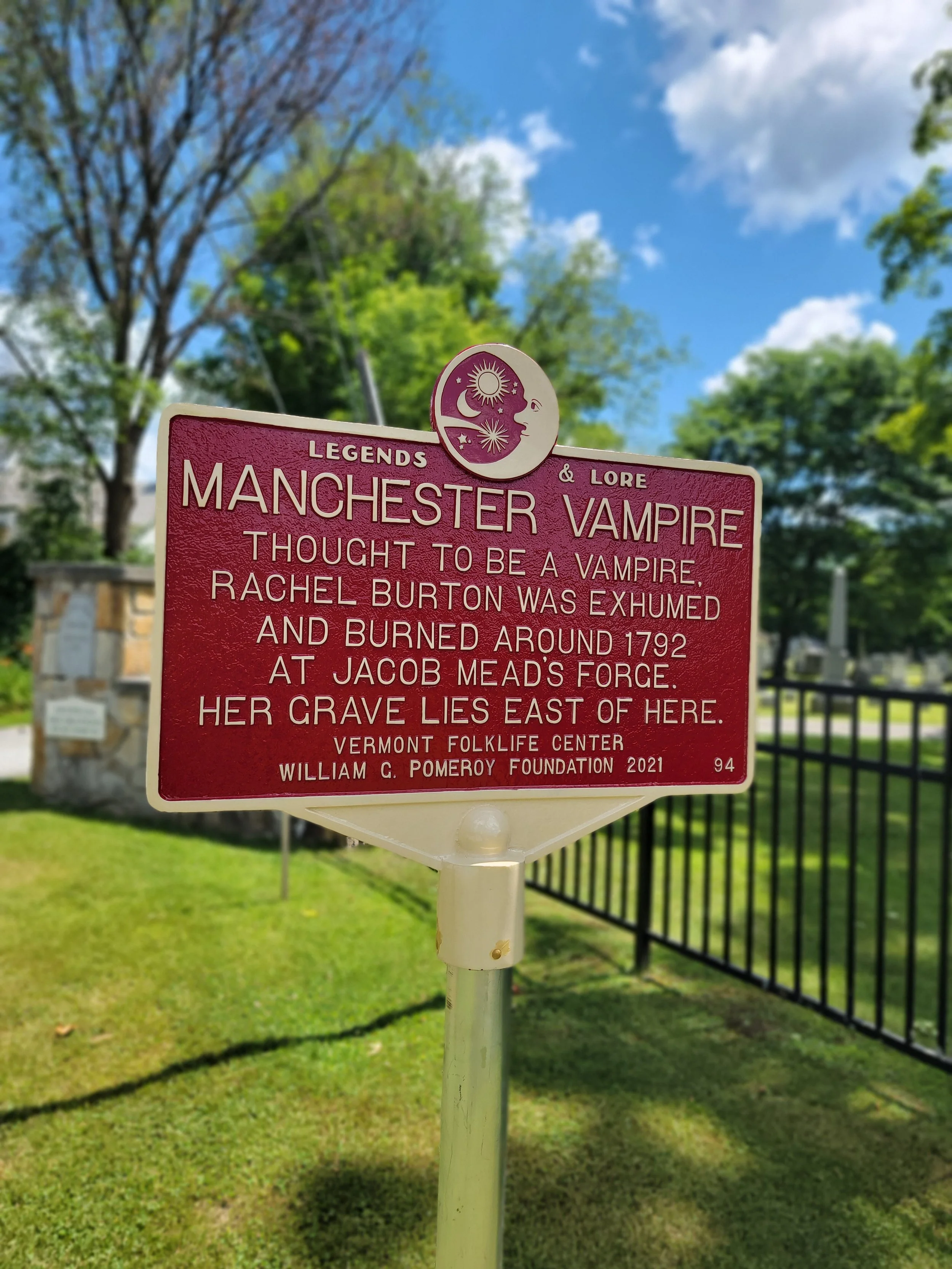 In 1792 Rachel Harris Burton of Manchester was exhumed from her grave and partially burned out of fear she had become vampire. Rachel, and the citizens of Manchester, were caught up in a vampire panic that spread through New England during the late 18th and early 19th centuries, a panic with two documented cases in Vermont, first in Manchester and then again over 40 years later in Woodstock.
