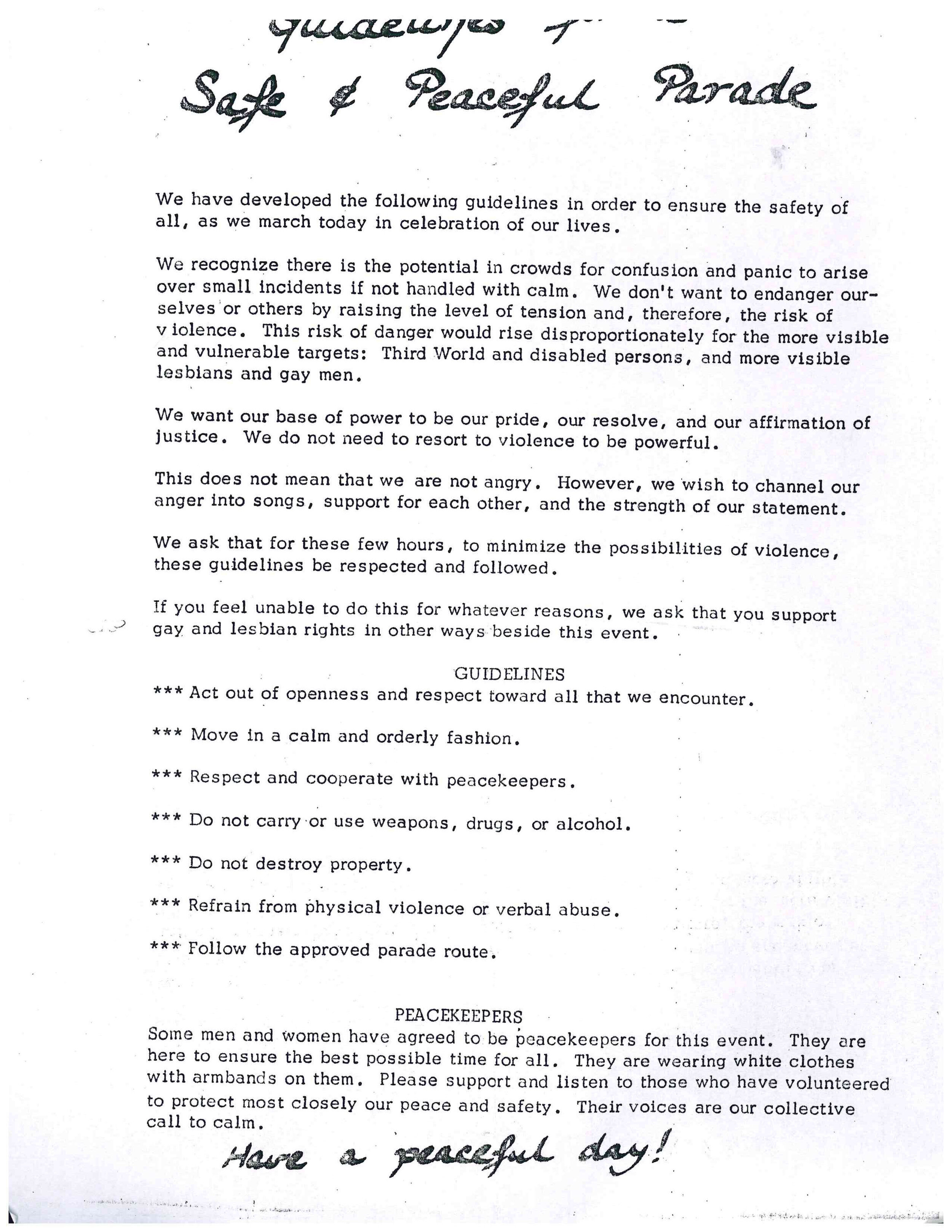 And that's my memory of how Gay Pride started, because as a group, a lot of activists, lesbians from the Burlington area, had traveled to New York City for the gay pride parade there. And we got so excited about that and thought, oh, this is unbelievable. Those of us who traveled to California to visit friends or just because there was a women's bookstore there, imagine go to California for that? Got to march in their Gay Pride and we—and probably it was Leah who said, “well, we could just do our own.”